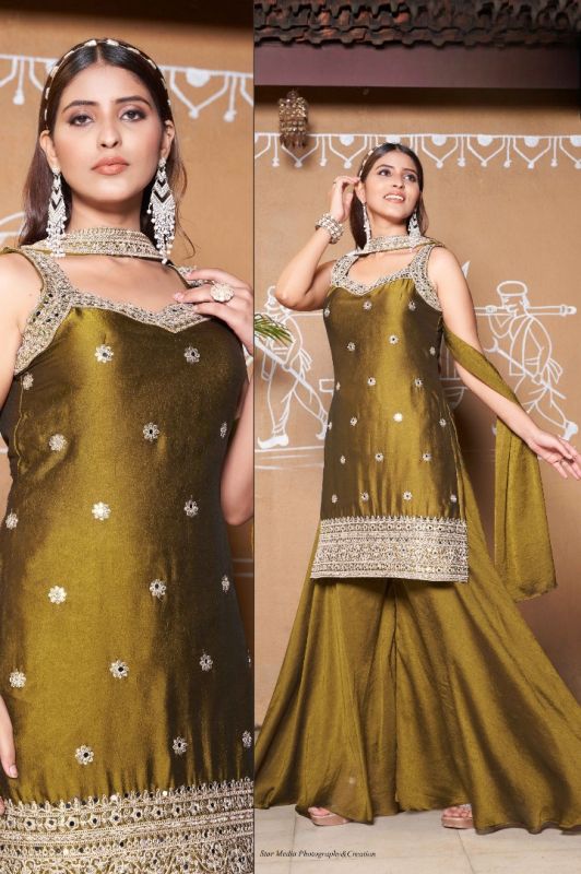 We are a leading Manufacturer, Exporter, Supplier, and Trader of exquisite Ladies Sharara Suits crafted from luxurious silk. Available in a variety of colors, this embroidered ensemble is perfect for weddings. Each set comes in a plastic bag for protection. Originating from India, our Sharara Suits feature full sleeves and require dry cleaning for maintenance. Embrace the traditional style and elegance with our carefully curated collection that exudes grace and sophistication.